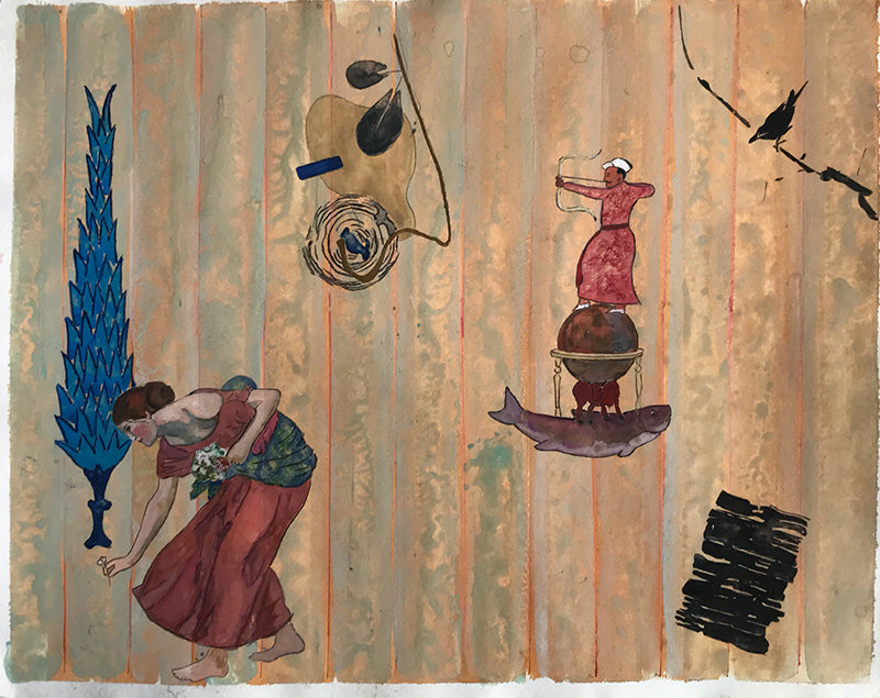 Gouache on handmade paper framed.